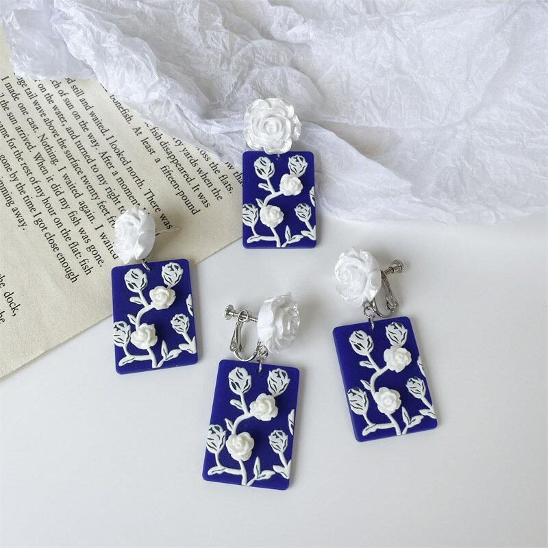 ピアス イヤリング アクセサリー アクリル 立体 バラ ビンテージ 韓国 ファッション 雑貨 かわいい おしゃれ 北欧 送料無料 [K] (T)