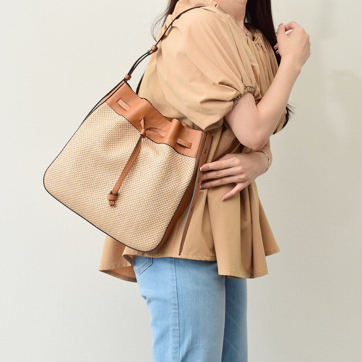 ラフィアとレザーのコンビネーションが春夏らしい印象のショルダーバッグです。ショルダーは長さ調整可能で、肩掛けにも斜め掛けにも対応。開口部はドローストリング仕様で荷物の出し入れもスムーズ。ナチュラルカラーが春夏コーデにぴったりな一品です。(ICカテゴリー)※生産過程に生じるキズが多少ある場合がございます。また素材の特性上、若干の色ムラ、擦れが見られる場合がございますが、こちらは素材の特性となります。予めご了承下さい。※サイズ換算(表記)はあくまで目安となります。2002年イタリア、アブルッツォ州にて創業されたブランド、ロリステッラ。デザイン、パターン、ファブリック、縫製まで徹底したMade in italyにこだわり、モダンでスタイリッシュなフォルムにフェミニンな要素を取り入れたデザインは欧州を中心にとても人気があります。・A4対応(22×31cm):×・長財布(10×20cm):〇・ペットボトル横向き(500ml):〇・ペットボトル縦向き(500ml):〇ALL/FREE : 【重さ】420g / 【高さ】31cm / 【幅】31cm / 【底マチ】5cm / 【ショルダーストラップの長さ】57-110cm