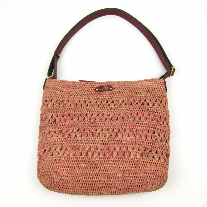 【全品39%OFFクーポン配布中】IBIZA イビサ ラフィア ショルダーバッグ 日本製 カゴバッグ 鞄 ブランド レディース ピンク 【中古】
