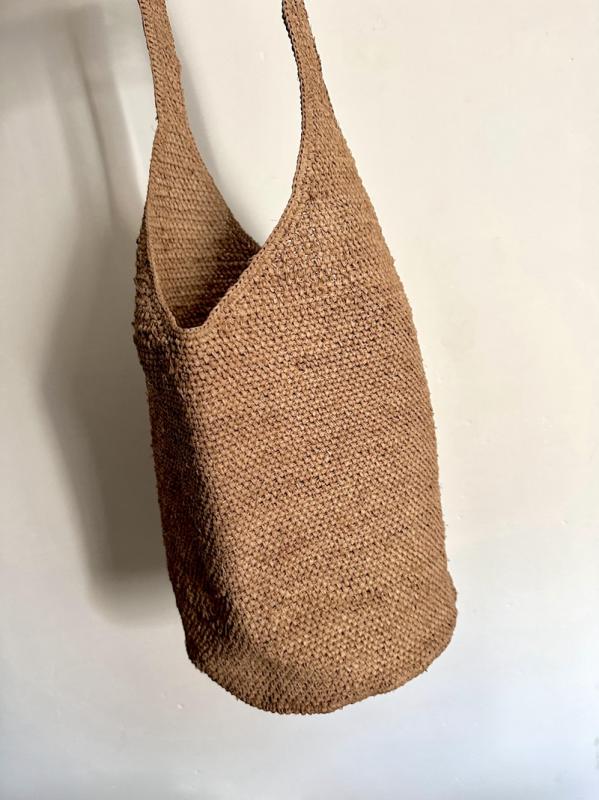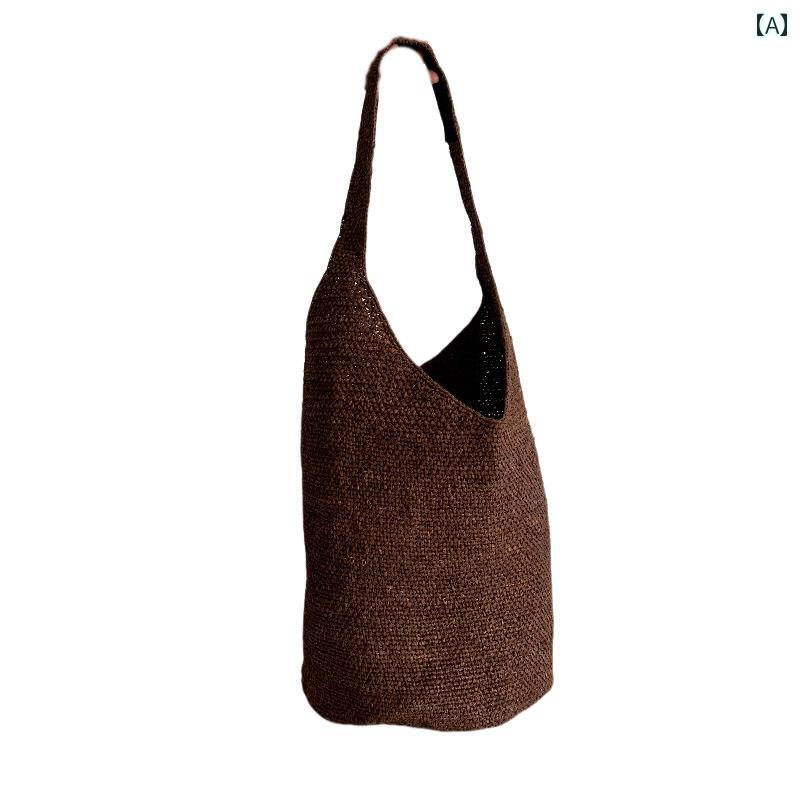 ストローバッグ ビーチ レジャー ボヘミアン 手編み コーヒー 色 ラフィア ショルダーバッグ バケット バッグ ホリデー ウェーブ バッグ