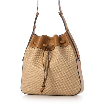 ロリステッラ LORISTELLA レザーコンビラフィアショルダーバッグ (ブラウンコンビ)