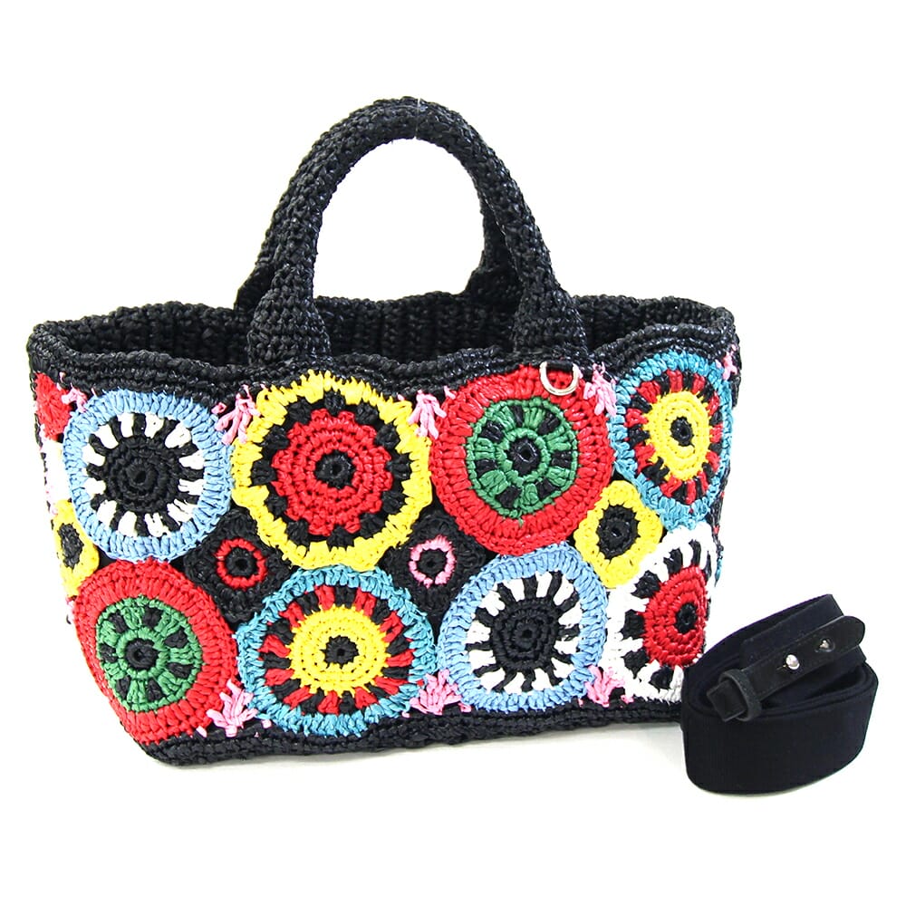 プラダ 2WAYハンドバッグ 1BG889 ブラック ラフィア 中古 ショルダーバッグ 斜め掛け クロスボディ カゴバッグ レディース カナパ PRADA