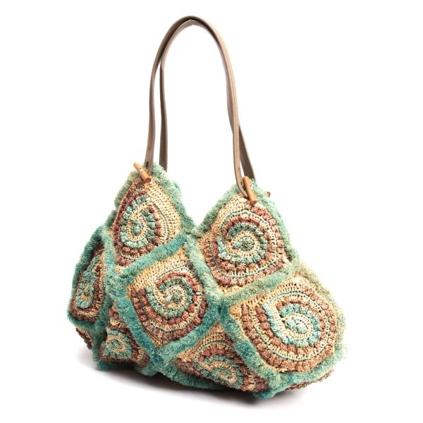 【中古】 ジャマンピュエッシュJAMIN PUECH ラフィアショルダーバッグ 緑ベージュ【レディース】