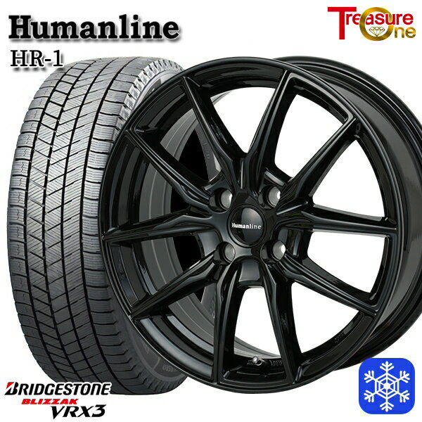 スタッドレスタイヤホイール4本セット 185/55R16 フィットシャトル 2024〜2025年製 ブリヂストン ブリザック VRX3 トレジャーワン ヒューマンライン HR1 BK 16インチ 6.0J 4H100