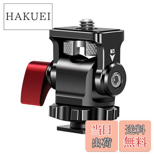【仕様】材質:アルミニウム合金;重量:55g;耐荷重:2kg;サイズ:28*42*19mm【優れた交換性】このマウントは標準ホットシューと1/4インチネジが備えており、 カメラフィールドモニター、カメラ、三脚、ストロボ、ビデオライト等の撮影用デバイスと交換性があります。【安定性】ノブネジでモニターをマウントに固定し、六角レンチで増し閉めで、安定性を向上させる【角度調節】水平方向に360度、垂直方向に180度を調節可能、必要に合わせて、載せていたデバイスの角度を自由に調節可能。【安心のデザイン】モニタとカメラを接続するところは滑り止めシリコンマットを採用、機器の損傷を防止します。