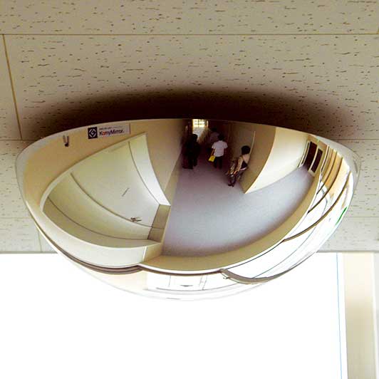 製品の特長 360度見えて死角解消! 360度どの方向からも人の動きが見えるので、十字路の衝突防止や家具などの間の死角解消に最適です。 浮遊感覚のシンプルデザインは、グッドデザイン賞を受賞しました。 製品の特長 ●360度見えるから、十字路の衝突防止や隙間の死角解消等に幅広くご利用いただけます。 ●軽量で柔軟性がある「やわらかミラー採用」の製品なので、もしもの落下の時も安全です。 用途 十字路の衝突防止やロッカー室の盗難対策・忘れ物対策、工場・倉庫の安全対策に 天井取り付け専用のビス式 室内専用 製品仕様 大きさ(mm):φ495×H225 全重量(kg):0.82 像の大きさ(曲率半径):小(256R) ミラー材質/厚さ:アクリル/3mm 付属品:アルミチャンネル、4×45トラスタッピングビス2本 取付方法:ビス式(天井直付け) ※オイルミストや強酸・アルカリの発生場所ではご使用できません。KomyMirror(コミーのミラー)の活用例 身近なコンビニから航空機までコミーのミラーは、安全・防犯・サービス・効率アップに役立っています 工場・倉庫の活用例KY(危険予知)やヒヤリ・ハット対策に。また、生産ラインを見える化し、安全・効率アップに役立ちます。 十字路・T字路・L字路の衝突防止に / 生産ラインの監視・効率アップに / 出入口の安全確認に 台車の安全運搬に / 異物混入対策に / 車やフォークリフトの接触防止に [FFミラー通路] [FFミラー車出口] [FFスタンドミラー] [ワーレン] [スーパーオーバル] [丸ミラー] [ラミコーナー] [ハーフドームミラー] [ラミ] [ラミドーム] [ドームミラー] [クォーターミラー] [フォーク出口ミラー] オフィスの活用例衝突防止などのヒヤリ・ハット対策や防犯対策にお役に立ちます。 通路の衝突防止に / 来客へのすばやい対応に / 階段での衝突防止に ロッカー室の盗難対策・忘れ物対策に / 台車・配膳車の安全運搬に [FFミラー通路] [FFミラー三方枠用] [FFミラーかご用] [スーパーオーバル] [丸ミラー] [ラミコーナー] [ラミ] [ラミドーム] 学校・図書館の活用例階段・通路での衝突防止に。不審者対策や見守りに。 書架の間の確認に / 不審者対策や生徒の見守りに / 廊下での衝突防止に [FFミラー通路] [FFミラー三方枠用] [FFミラーかご用] [スーパーオーバル] [丸ミラー] [ラミコーナー] [ラミ] [ラミドーム] 病院の活用例階段・通路での衝突防止や、患者さんたちの安全確認に使用されています。 受付・待合室の状況把握に / 患者さんの見守りに / エレベータホールの衝突防止に T字路の衝突防止に / 十字路の衝突防止に / L字路の衝突防止に [FFミラー通路] [FFミラー三方枠用] [FFミラーかご用] [スーパーオーバル] [丸ミラー] [ラミコーナー] [ラミ] [ラミドーム] 介護・福祉施設の活用例階段・通路での衝突防止や、利用者さんたちの見守りや安全確認に使用されています。 入所者さんの見守りに / 出入口の見守りに / エレベータホールの衝突防止に L字路の衝突防止に / T字路の衝突防止に / 十字路の衝突防止に [FFミラー通路] [FFミラー三方枠用] [FFミラーかご用] [スーパーオーバル] [丸ミラー] [ラミコーナー] [ラミ] [ラミドーム] 店舗の活用例接客サービスや万引・防犯対策に。 お店のすばやい状況把握に / お客様へのタイミングのよい声かけに / 万引きの抑止に 来客へのすばやい対応に / 不審者などの早期発見に [スーパーオーバル] [丸ミラー] [ラミ] [ラミドーム] [ドームミラー] 駐車場の活用例フラットなのにカーブミラーと同じ効果。ガレージの出口の安全確認に。 道路の死角から来る自転車や人などの確認に / 出入口の安全確認に / 壁面のない場所でも可動式のミラーで解消 [FFミラー車出口] [FFスタンドミラー] [フォーク出口ミラー] エレベータの活用例挟み込み・乗り残し防止や安全確認に。利用者同士の気くばりにご利用いただけます。 挟み込み・乗り残し防止に / 利用者同士の気くばりに / 乗り込む時の確認に 背後不安の解消に / 車やフォークリフトの接触防止に [FFミラー三方枠用] [FFミラーかご用] [FFミラーBC] [クォーターミラー] 航空機の活用例 乗客の忘れ物確認に / CAのセキュリティチェックに [FFミラーAIR]