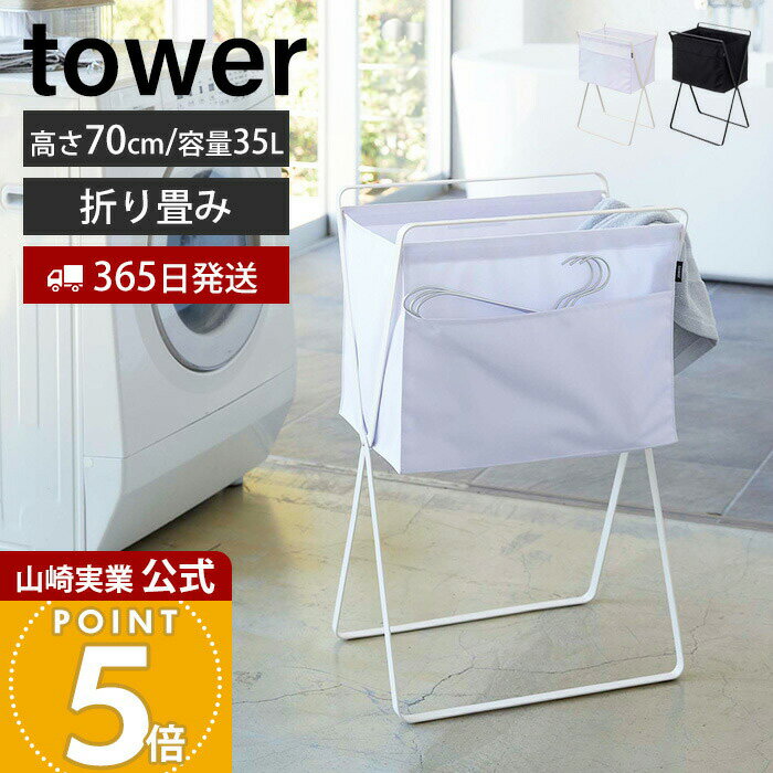 【365日出荷】山崎実業 折り畳み高床式ランドリーバスケット タワー tower 公式 折りたたみ スクエア 大容量 高さ70 容量35L ボックス 手荷物置き 洗濯物入れ 脱衣かご ストッカー ホワイト 5661 5662