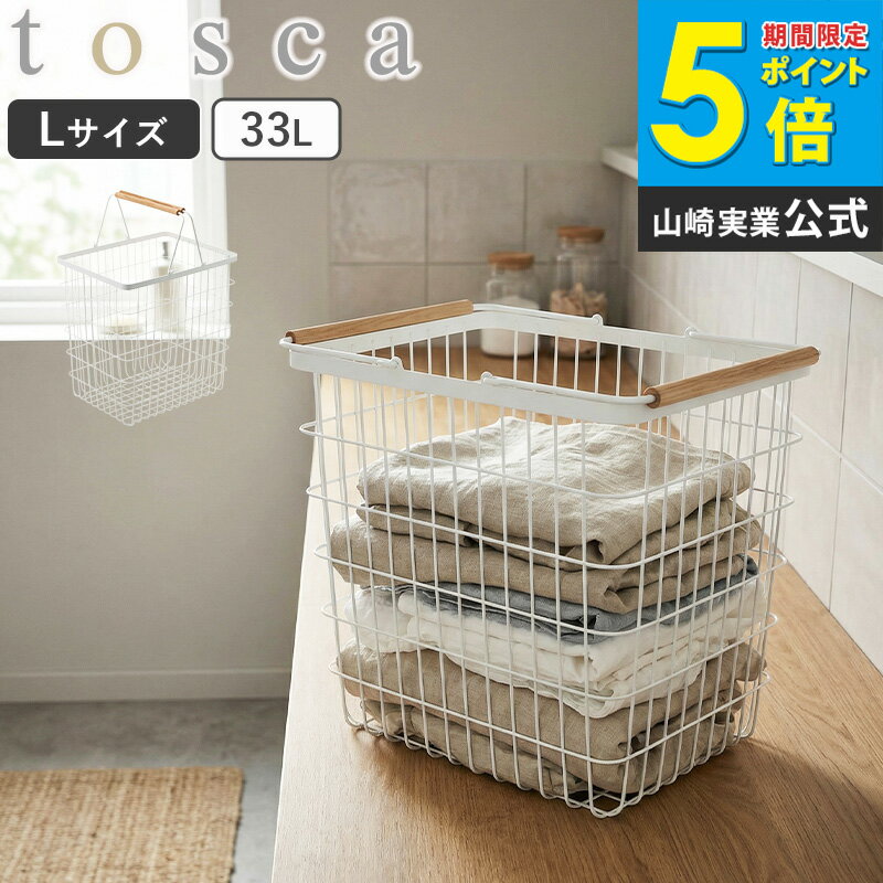 ランドリーバスケット トスカ Lサイズ 洗濯かご スリム おしゃれ ランドリー収納 ワイヤーバスケット 大容量 ランドリーバッグ 洗濯物入れ 洗濯 かご カゴ おすすめ 北欧 ナチュラル スチール ホワイト 白 シンプル 山崎実業 tosca yamazaki works