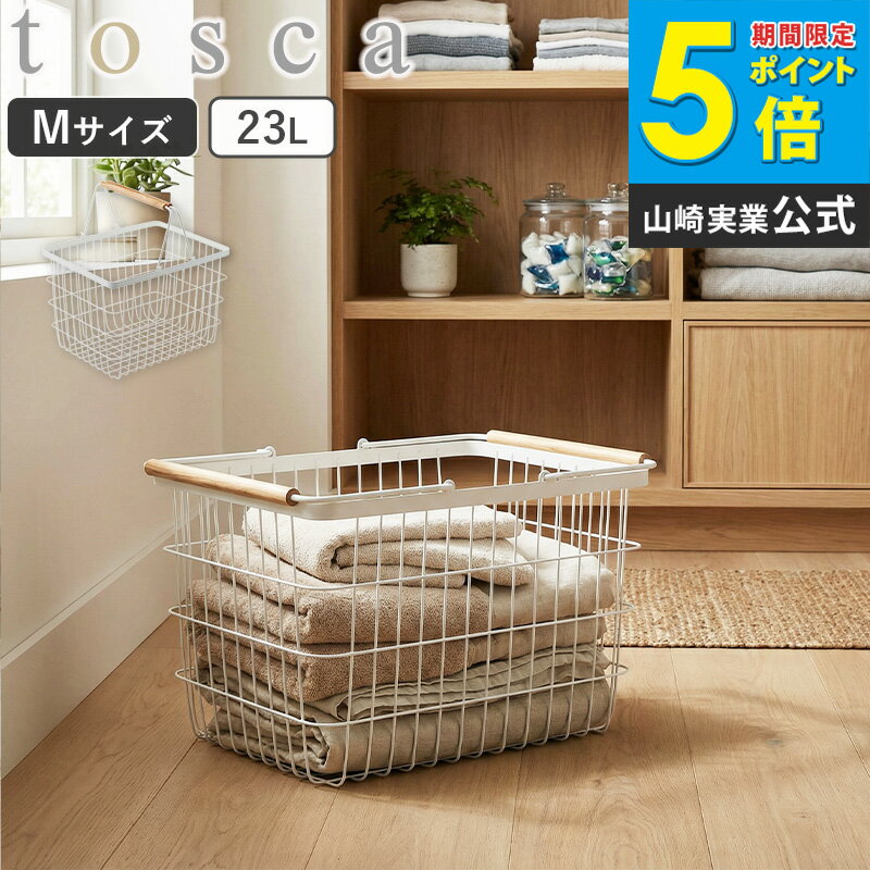 【送料無料】 ランドリーバスケット トスカ tosca Mサイズ ワイヤーバスケット ランドリー収納 ランドリーバッグ 洗濯かご 洗濯物入れ スリム 洗濯 かご カゴ おしゃれ おすすめ 北欧 スチール ホワイト 白 シンプル 山崎実業 yamazaki works