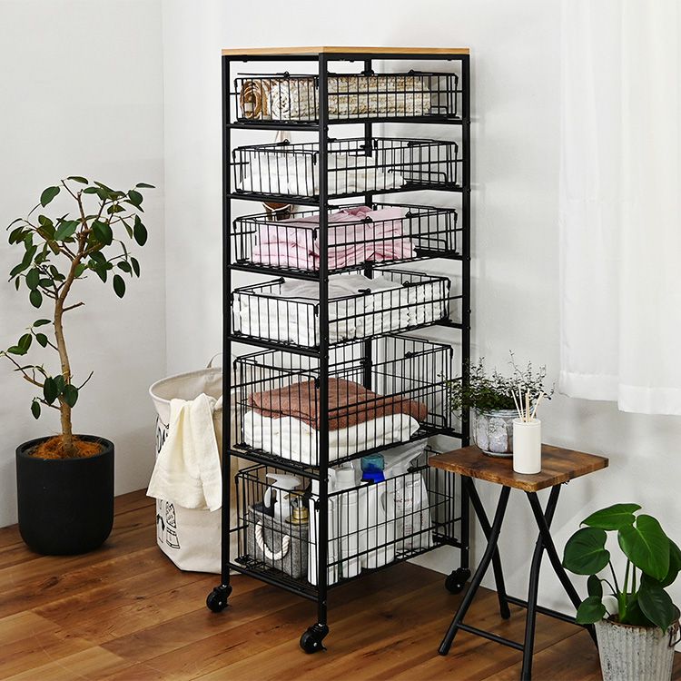 隙間収納 バスケット付き 6段 持ち運べるかご付き キャスター付き 押し入れ収納 クローゼット収納 おもちゃ収納 洗濯かご キッチンワゴン キッチン収納 プリンター台(代引不可)【送料無料】