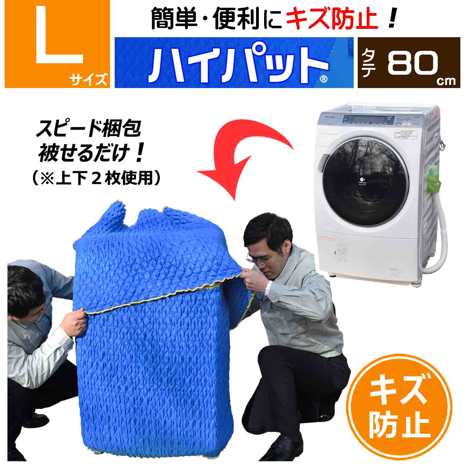 ※ 本製品は、筒型の横方向(円周方向)に伸縮する「輸送用の什器保護カバー」です。(天面・底面は開いております。) ▼ 画像クリックで拡大(モニターの発色や光の具合により、実際の色味と少し異なって見える場合があります。) 引越し・物流のロングセラー商品「ハイパット」 被せるだけで誰でもプロの梱包。 什器の形状や大小に関係なく、広げて被せるだけで初心者でもプロの梱包ができます。 繰り返して使えて省資源。ゴミが出ない。 ハイパットは丈夫で長持ち。使い捨て資材とは異なり、繰返して使えて経費削減に。 現場作業のスピードアップに。 カッターやテープを使わずゴミも出ないので、パッと被せて・サッと開梱。(※ 写真は "ハイパット110-L" を2枚使用) 製品仕様:ハイパット 80-L【型番:MHP-80L 】サイズ表はこちら 特徴 ハードゴム仕様 【ゴムの耐久性重視タイプ】 形状 筒型(ハラマキ状)※ 天面・底面は開いております。 縦長さ 800mm 円周 (胴回り) 2,000mm (収縮時) ~ 4,000mm (最大伸長時) 最適胴回り 円周 3,000mm 前後の什器向け 生地色 表面:青色 / 裏面:青色【両面青色リバーシブル】 撥水加工 表面:撥水なし 裏面:撥水なし ゴムの強さ ★★★★★(ハード:凹凸の少ない重量物向け) ゴムの耐久性 ★★★★★(長寿命:ライクラ®ファイバー使用) 被せやすさ ★★★☆☆(やや被せにくい:フィット感が強い) パットの軽さ ★★★☆☆(やや重い:中綿量が多め) ※ ライクラ®(LYCRA®)は The LYCRA Company の商標です。 ※ ハイパット/エコパット/ニューパット/エアーパットは岡葉流通(株)の登録商標です。引越業界のロングセラー商品で、繰返し使える 梱包材。 東レ・グループの伸縮が長持ちするライクラ®ファイバーを 使用して「物流プロ向け」に従来品よりタフな伸縮力を 実現しました。素早く・手早く・簡単に梱包養生。 類似品にご注意ください。⇒【商標「ハイパット」等の使用に関するお願い】 近年、色やサイズが似ている類似品が数多く出回っておりますが、品質や仕様が全く異なります。 登録商標®をご確認の上「ハイパット®」をご指名下さい。