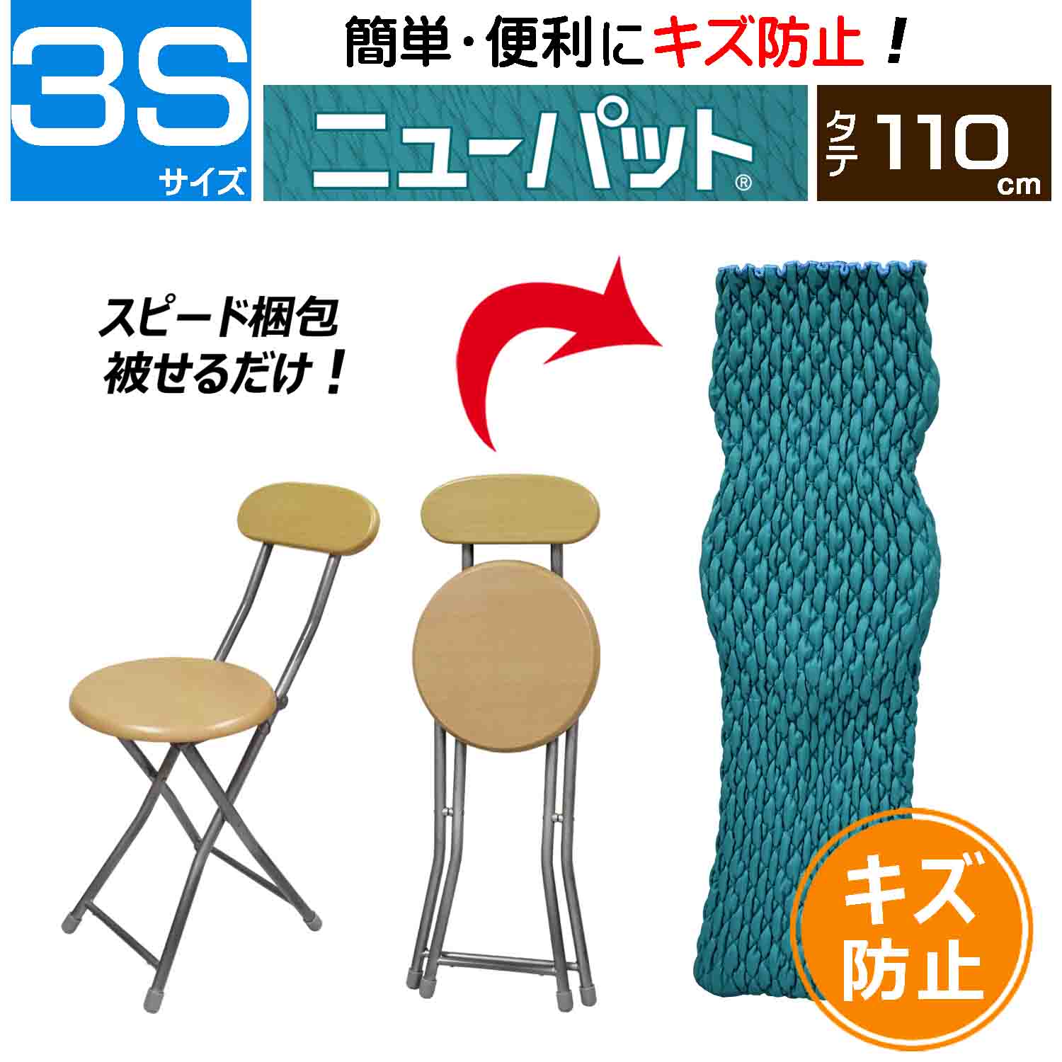 ※ 本製品は、筒型の横方向(円周方向)に伸縮する「輸送用の什器保護カバー」です。(天面・底面は開いております。) ▼ 画像クリックで拡大(モニターの発色や光の具合により、実際の色味と少し異なって見える場合があります。) 抜群の被せ易さを追求した新商品「ニューパット」 被せるだけで誰でもプロの梱包。 什器の形状や大小に関係なく、広げて被せるだけで初心者でもプロの梱包ができます。 女性や一人現場でも扱い易い、超ソフトな伸縮力。 ニューパットは生地全体が優しく伸縮。女性やお一人の現場でも非常に扱いやすい。 現場作業のスピードアップに。 カッターやテープを使わずゴミも出ないので、パッと被せて・サッと開梱。(※ 写真は "ニューパット80-M" を使用) 製品仕様:ニューパット 110-3S【型番:MNP-110S3 】サイズ表はこちら 特徴 超ソフト仕様 【女性・1人現場でも扱い易いタイプ】 形状 筒型(ハラマキ状)※ 天面・底面は開いております。 縦長さ 1,100mm 円周 (胴回り) 500mm (収縮時) 〜 1,000mm (最大伸長時) 最適胴回り 円周 750mm 前後の什器向け 生地色 表面:緑色 / 裏面:緑色 撥水加工 表面:撥水あり 裏面:撥水なし ゴムの強さ ★★☆☆☆(超ソフト:凹凸什器・薄型パネル材向け) ゴムの耐久性 ★★★★☆(やや長持ち) 被せやすさ ★★★★★(非常に広げやすい:超ソフト伸縮) パットの軽さ ★★★★★(軽量:女性でも扱いやすい) ※ ハイパット/エコパット/ニューパット/エアーパットは岡葉流通(株)の登録商標です。伸縮率200%の繰返し使えるキルティング梱包材。 被せるだけで、初心者でもプロの梱包が可能です。 ゴムを使わず生地全体が柔らかく伸縮する独自構造を採用。 凹凸什器やパネル什器で抜群の被せやすさを実現。
