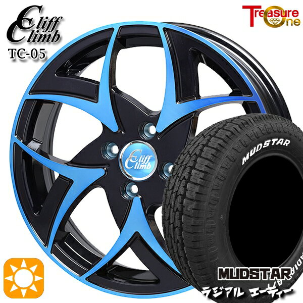 【取付対象】フィット アクア 175/65R15 88H XL マッドスター ラジアル A/T ホワイトレター トレジャーワン クリフクライム TC05 ブラックポリッシュブルークリア 15インチ 5.5J 4H100 サマータイヤホイールセット