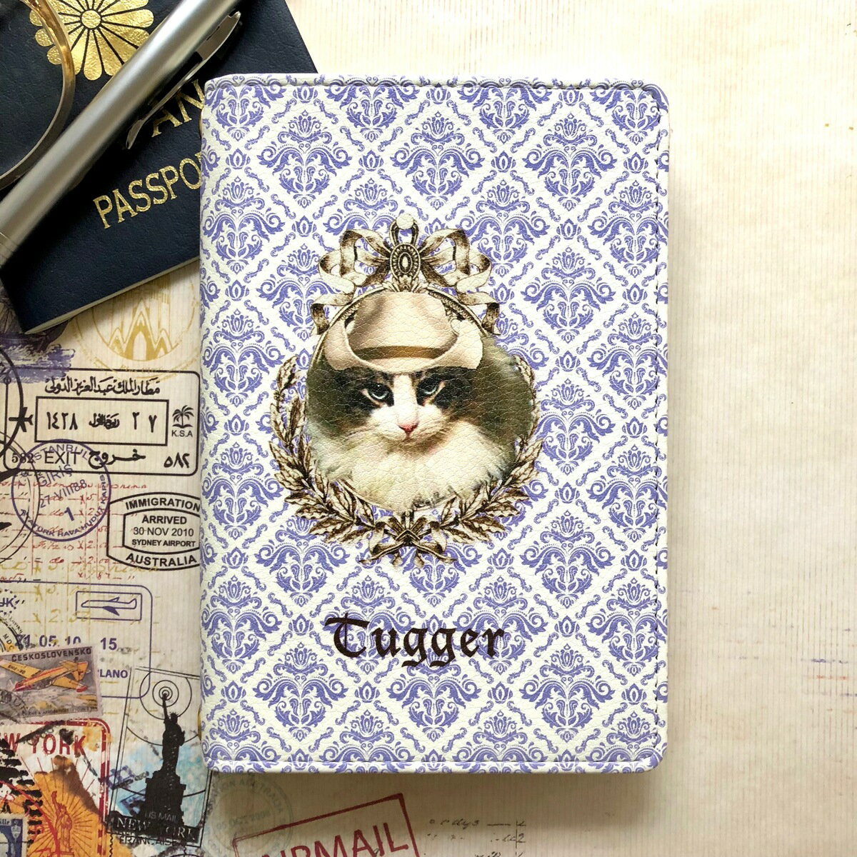 猫グッズ 犬グッズ ペットグッズ マルチケース パスポートケース 診察券ホルダー アンティーク ビクトリアン ダマスク うちの子グッズ ペットの写真 うちの子の写真 メモリアル 記念品 ペットロス 国内生産 犬 猫 ウサギ インコ オリジナル