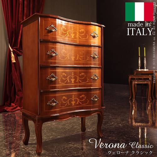 【完成品】ヴェローナクラシック 猫脚 象嵌 4段 チェスト幅58cm 奥行31cmキャビネット 収納 タンス 箪笥 リビング 木製 イタリア 輸入家具 家具 ヨーロピアン アンティーク イタリア製 デザイン家具 おしゃれ