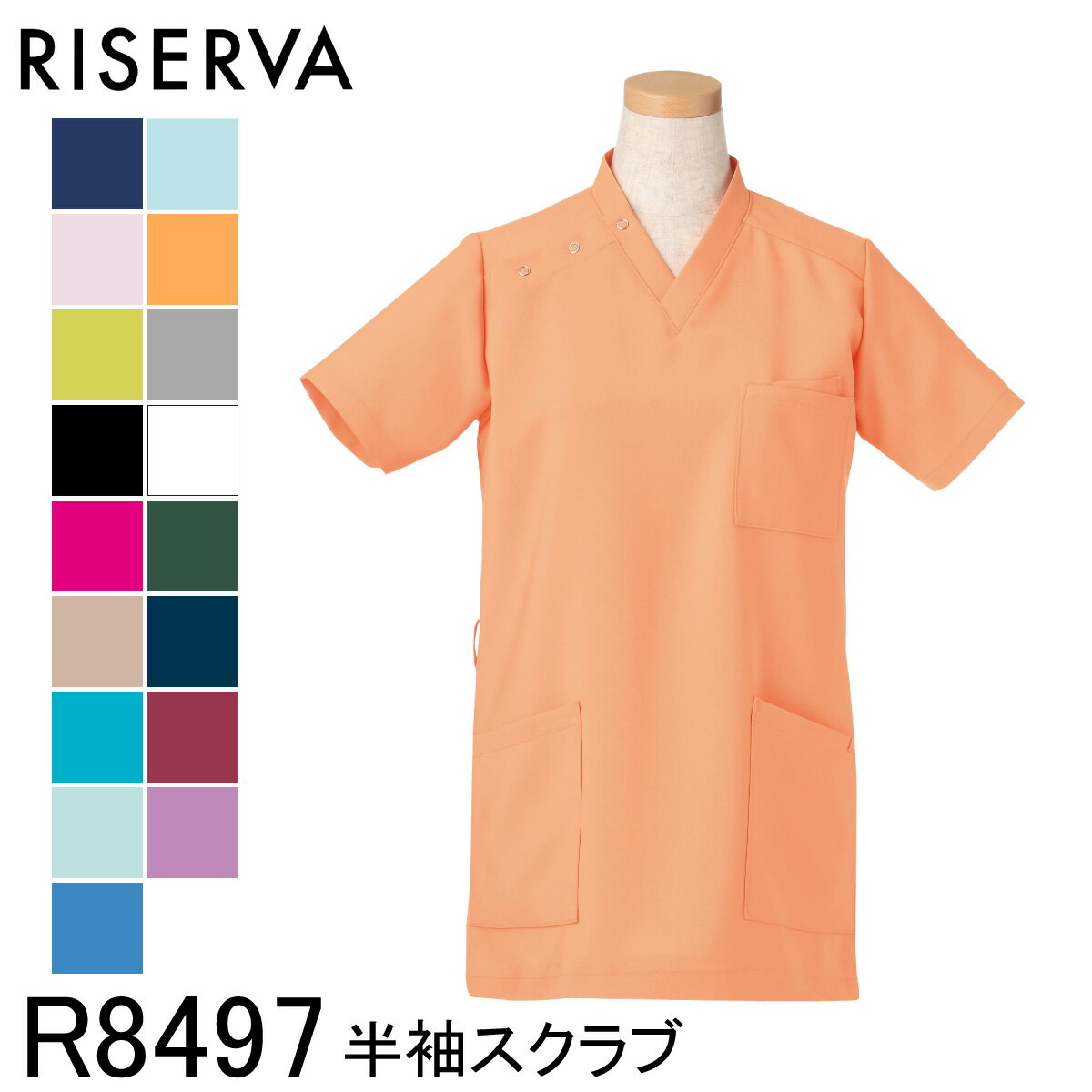 【ヤギコーポレーション】 【RISERVA リセルヴァ】 半袖スクラブ R8497 男女兼用 ユニセックス 17色展開 SS~4L 白衣 半袖 おしゃれ 医療 病院 クリニック 介護士 医師 医者 ドクター 看護師 ナース 工業洗濯対応 吸汗速乾 肩開き