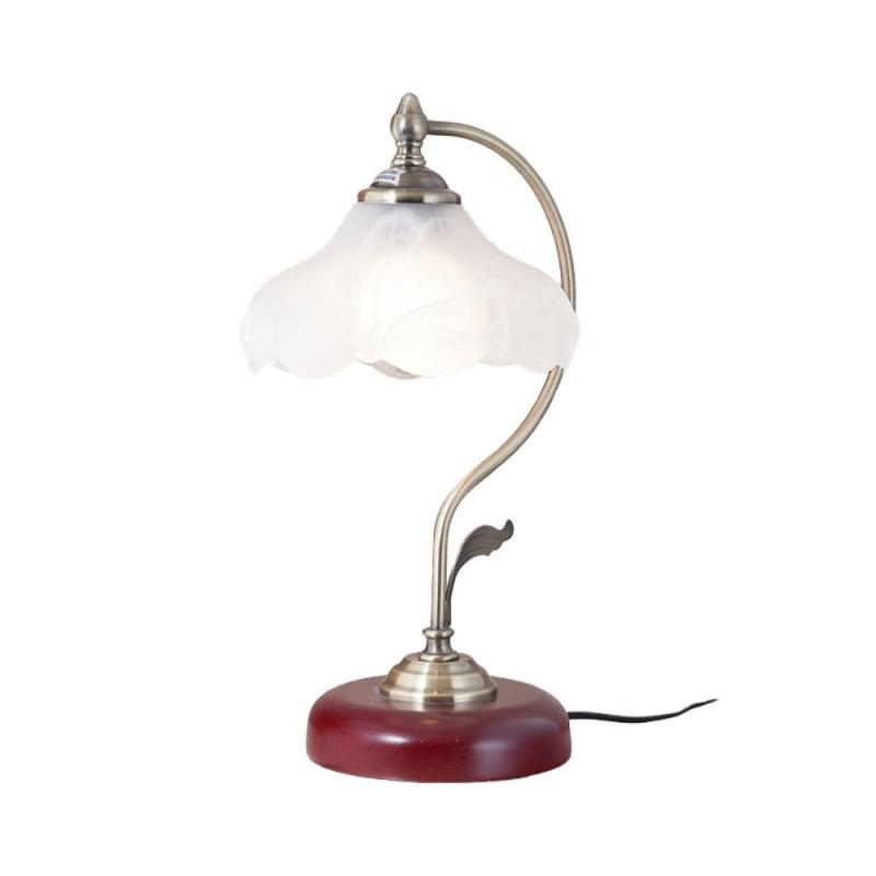 サイズ:約W26xD26xH43cm 素材:ガラス(シェード)、鉄、木材(土台) 生産国:中国 上品な美しさのあるテーブルランプクラリティ。お花をイメージしたランプなので葉っぱがワンポイント。ショードの形もかわいく、マーブル模様がおしゃれです。土台も木製で、高級感のあるランプです。 ■重さ:約1.5kg■電球:E26/4WLED電球1個付き