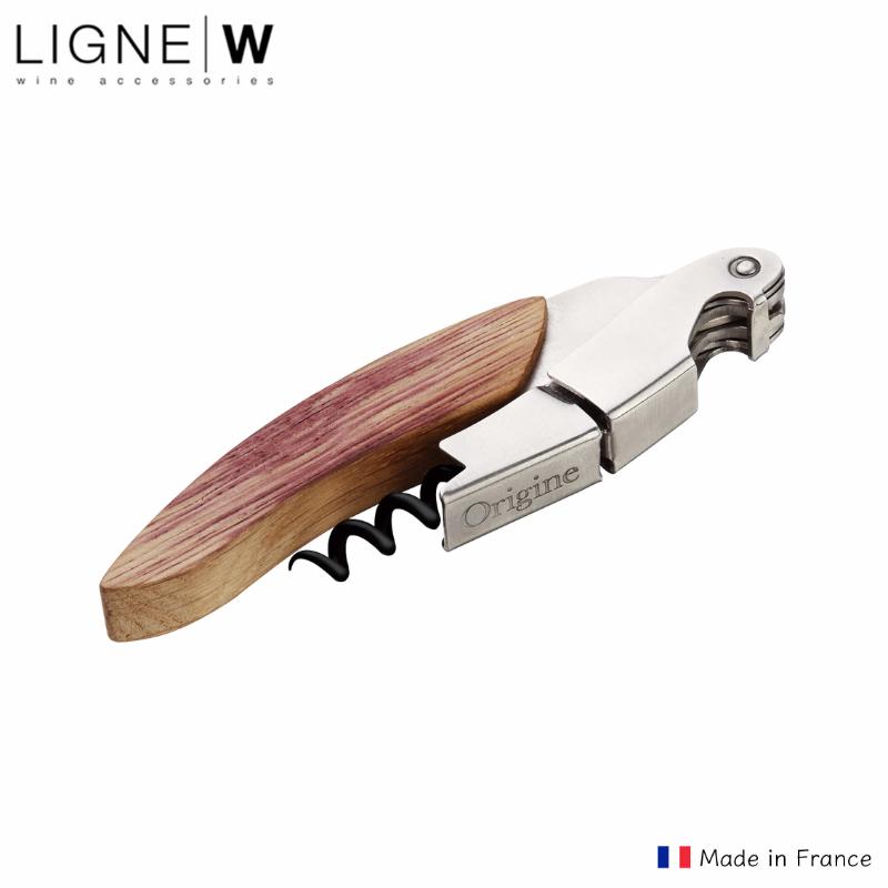 ワインの熟成に実際に使用されていたフランス産オークバレルをハンドルに採用。 内側の樽材を使用しているため片面に赤ワインが染み込んだ「ワイン」、両面とも樽材本来の色に仕上げた「ナチュラル」。お好みでお選び頂けます。 フックには同社オリジナルのダブルアクション・システムを備え、ロングコルクでもスムーズに抜き取ることが可能です。 木の温もりあるフランス製デザインソムリエナイフ。 初めての方や女性の方でも少ない力で抜くことができます。 リニュー・デュブルベイは2008年創業、新進気鋭のソムリエナイフビルダー。 オーナーのセバスティアン氏は、ナイフ業界では珍しく「ワイナリー出身」という経歴の持ち主。 だからこそ、ワインにまつわる文化や情熱が込められた道具作りを信条としています。 高い品質を誇る伝統の技術と、斬新な素材・デザインが融合した「LIGNE W」のソムリエナイフが、 従来のフランス製オープナーとは明らかに一線を画す雰囲気を漂わせている所以です。 フランス製 本体サイズ 約125×35×約8mm 75g 外装サイズ 約155×55×約33mm 120g 販売者 亀田産業株式会社 栃木県宇都宮市川田町432