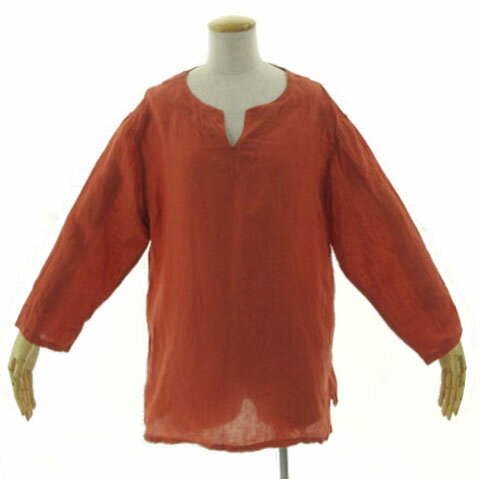 【中古】アーバンリサーチ サニーレーベル URBAN RESEARCH Sonny Label リネンキーネックブラウス LA75-13S052 長袖 裾スリット リネン100% オレンジ系 M レディース 【ベクトル 古着】 250729