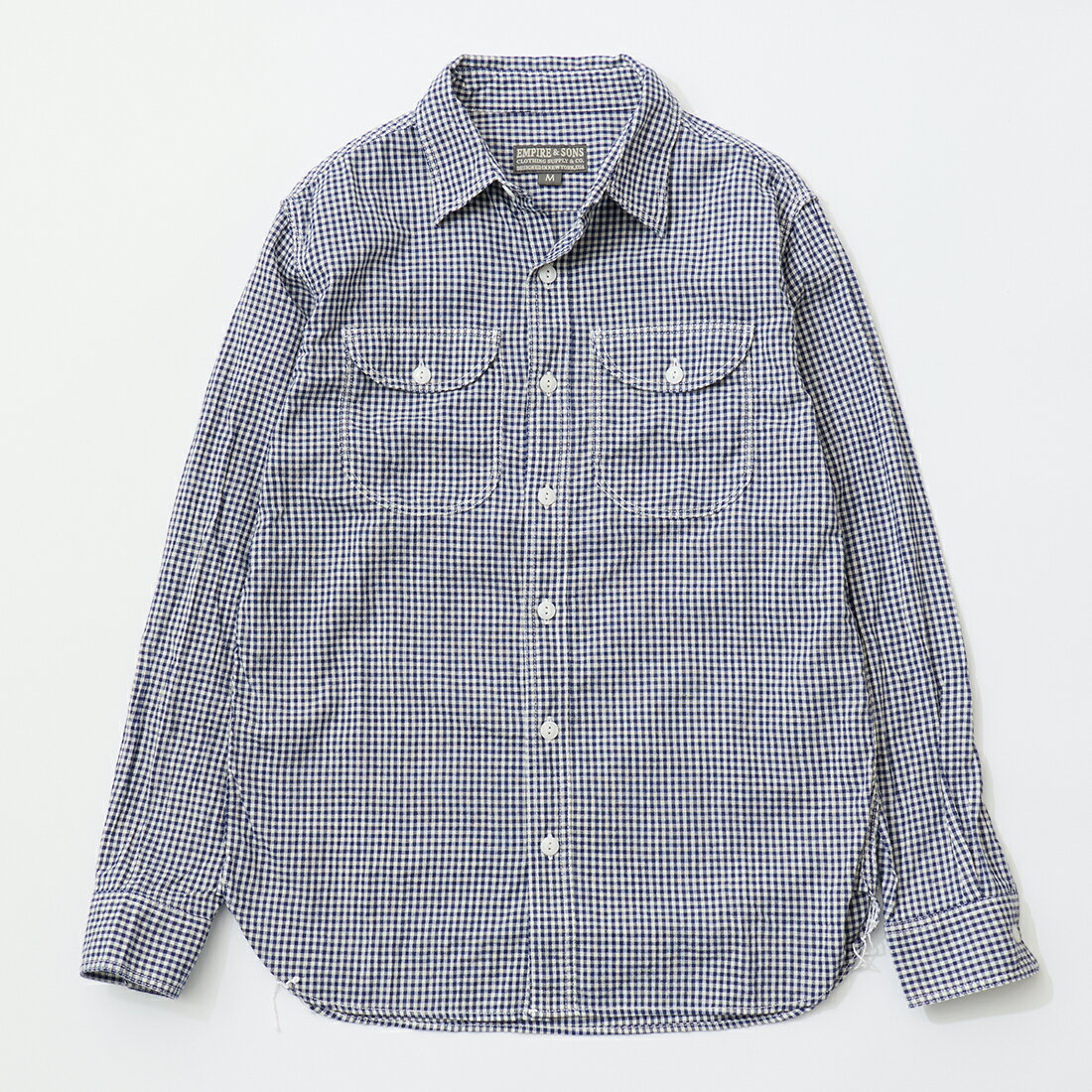 EMPIRE & SONS (エンパイア アンド サンズ) L/S UTILITY WORK SHIRT COTTON LINEN GINGHAM CHECK - BLUE ギンガムチェックシャツ メンズ