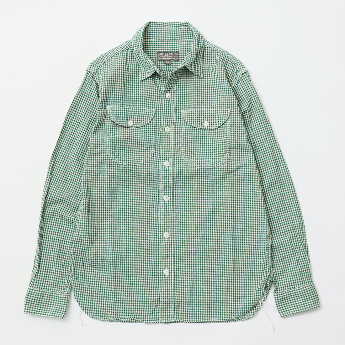 EMPIRE & SONS (エンパイア アンド サンズ) L/S UTILITY WORK SHIRT COTTON LINEN GINGHAM CHECK - GREEN ギンガムチェックシャツ メンズ