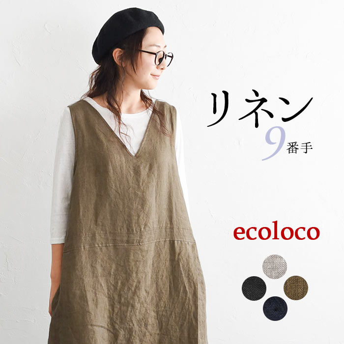 【高評価★4.6】ジャンパースカート ワンピース レディース 9番手リネン 麻100%/ナチュラル カジュアル ジャンスカ 体型カバー エコロコ ジャンスカ e+/春 秋冬 大きいサイズ 25AW0704R,