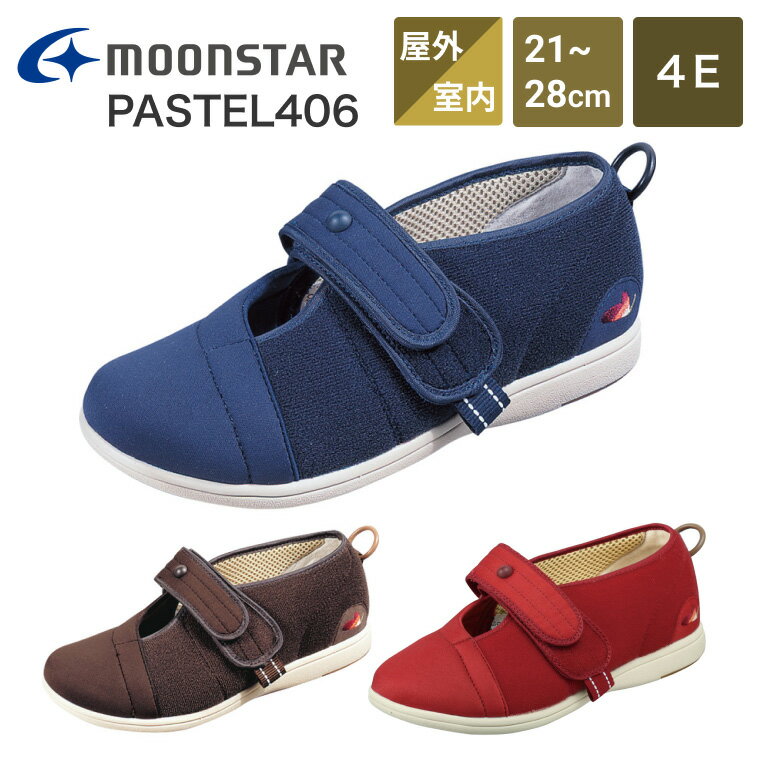 介護シューズ パステル406(両足販売) ムーンスター │ 介護 靴 リハビリシューズ 室内用 屋内用 室外用 屋外用 屋内外兼用 男女兼用 シニア 高齢者 介護用品