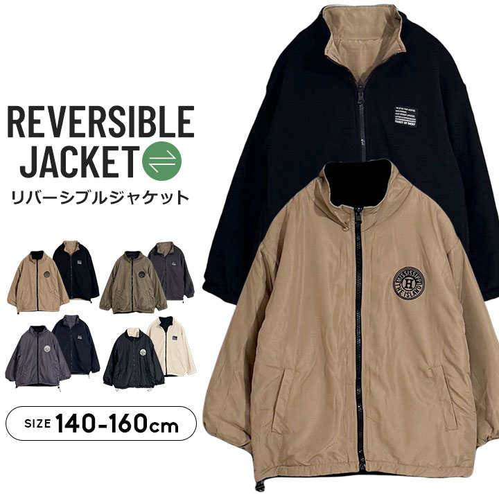 リバーシブルジャケット キッズ ジュニア 男の子 140cm 150cm 160cm フリース アウター 秋 冬 あったか シンプル お洒落 小学校 ジャケット 子供服 子ども こども ベージュ カーキ チャコール ブラック
