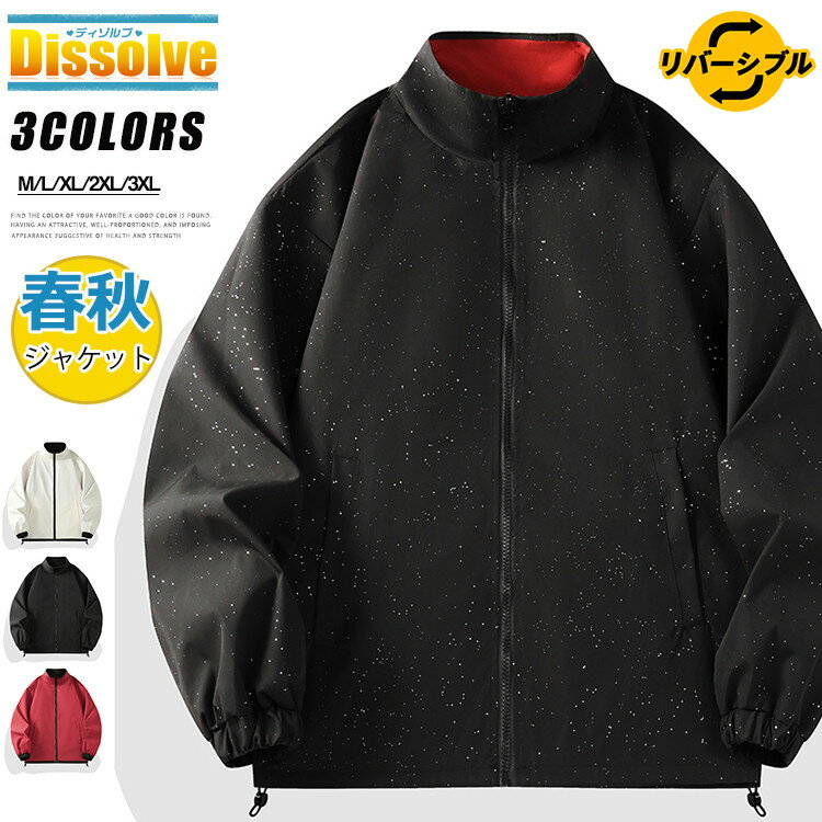 リバーシブル ジャケット メンズ 春 アウター ブルゾン 無地 ジャンバー 薄手 トラックジャケット スタンドカラー 両面着用 ビッグシルエット スポーツウェア カジュアル 春服 秋服 メンズブルゾン