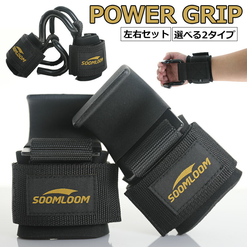 SOOMLOOM パワーグリップ 懸垂 バーベル ウェイトトレーニング グリップ リフティングフック 滑り止め ラバー 男性 女性 トレーニンググローブ ダイエット 筋トレ 握力補助 手首ガード 手首保護 手首加圧