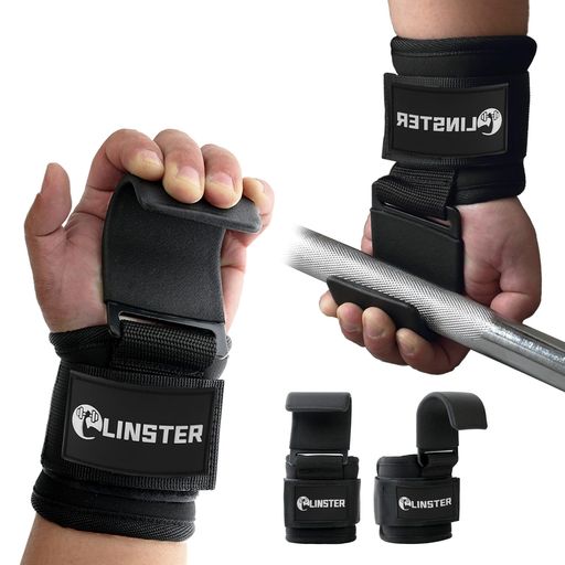 LINSTERウェイトリフティングフック(ペア)、幅9cmのネオプレンパッド付き高耐久リフティングリストストラップ、デッドリフト、パワーリフティング、懸垂用のハンドグリップサポート、男…