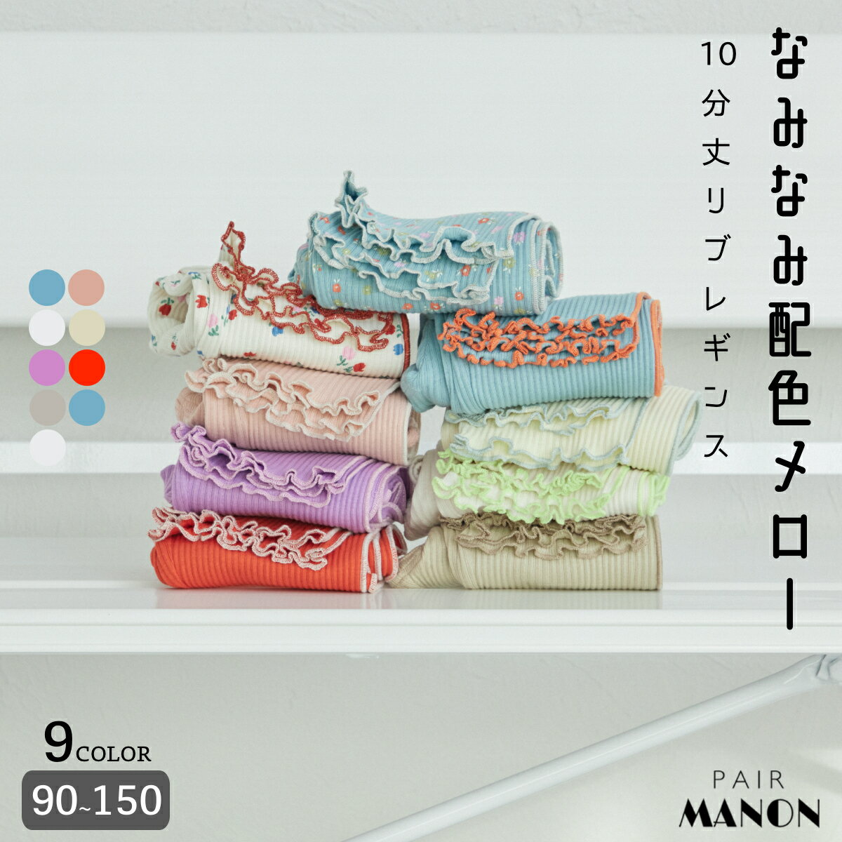 ペアマノン【リブコットン100】配色メロー 10分丈 リブレギンス キッズ服 子供服 ジュニア こども キッズ ガールズ 女の子 女児 90cm 100cm 110cm 120cm 130cm 140cm 150cm 春 夏 pairmanon ガーリー プチプラ お出かけ 通園 通学 おめかし デイリー 普段着 メロウ