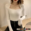 \クーポン配布/ ニットトップス レディース リブニット スクエアネック きれいめ ニット レディース リブ ニットソー トップス 長袖 シンプル プルオーバー ニットセーター タイトニット 無地 きれいめ トップス 着やせ トップス