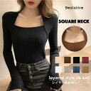 Beststore レイヤード風ニット 長袖 薄手 ニット 春秋冬 韓国 韓国ファッション リブニット スクエアネック きれいめ ニット レディース リブ ニットソー トップス 長袖 シンプル プルオーバー ニットセーター タイトニット 無地 きれいめ