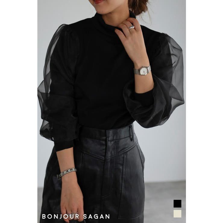 BONJOUR SAGAN 袖オーガンジーリブニットソー トップス