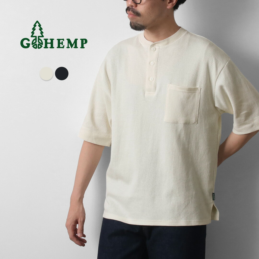 GOHEMP(ゴーヘンプ) マルチリブ ヘンリーネック ポケットTシャツ / メンズ 半袖 オーガニックコットン HENLEY POKET TEE