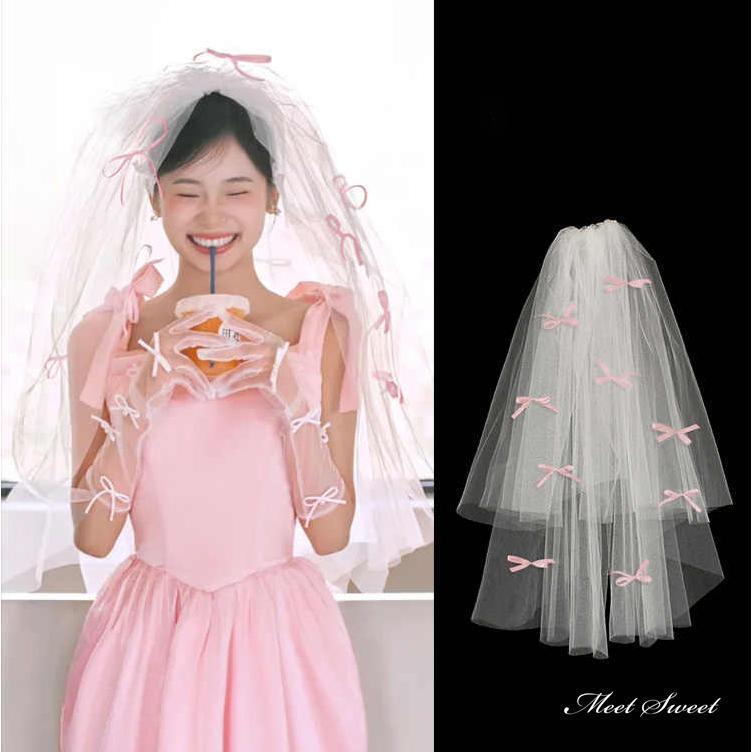 ウェディングベール リボン コーム付き ショートベール ミディアムベール ボリューム ウエディングベール 結婚式 花嫁 二次会 キュート 可愛い 蝶結び リゾート