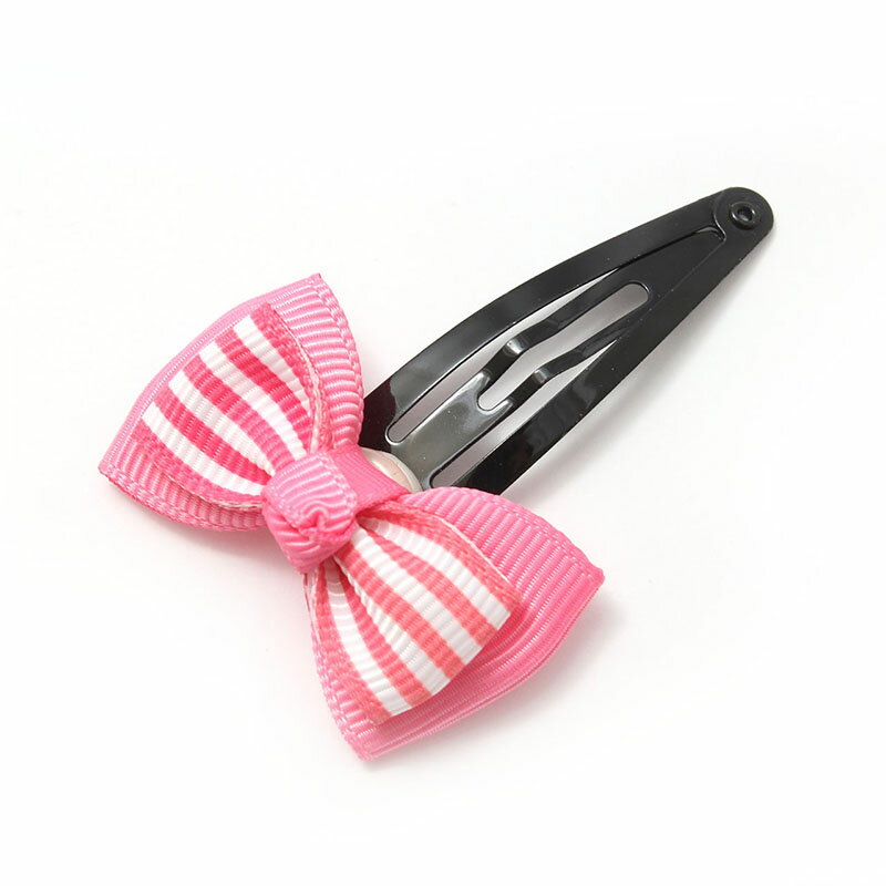 ヘアピン パッチンどめ グログランリボン ストライプ ピンク 【C23-39】返品不可 子供 ヘアアクセサリー 1個