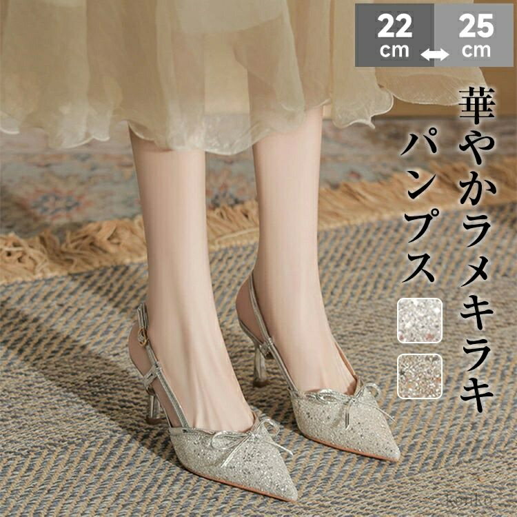 ラメ キラキラ リボンバックベルトヒール パンプス 靴 レディース 痛くない 歩きやすい 走れるパンプス ヒール 5cm 7cmハイヒール パンプス 美脚パンプス 楽ちん 小さいサイズ 大きいサイズ 卒業式 卒園式 入学式 入園式 結婚式 大人 コーデ 無地 送料無料