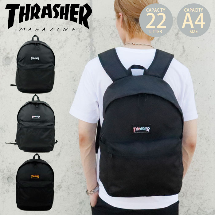 スラッシャー リュック メンズ 撥水 THRASHER リュックサック バックパック デイパック 22L THR-272 黒リュック 通学 通勤 レディース 学生 黒 多収納 大容量 鞄 軽量 部活 ブラック ストリート