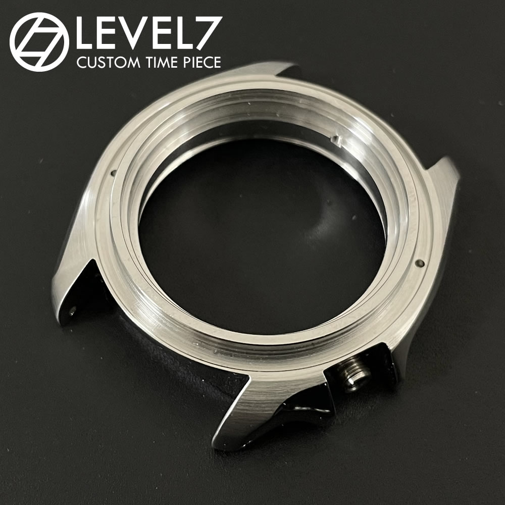 【SEIKO MOD カスタムパーツ】316Lステンレス製 ケース リューズ3時位置 ガードあり 20気圧防水 艶消し/ブラッシュシルバー カスタム用パーツ LEVEL7
