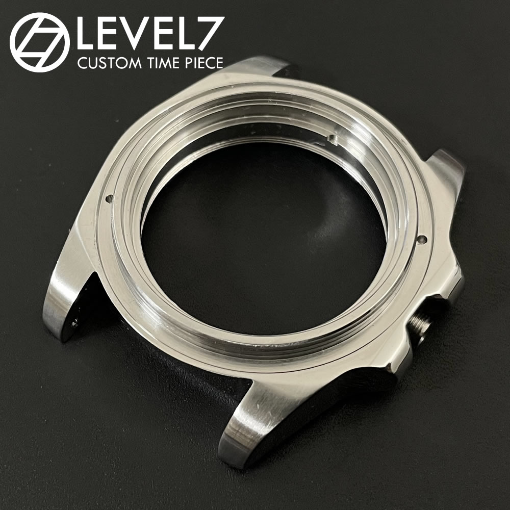 【SEIKO MOD カスタムパーツ】316Lステンレス製 ケース リューズ3.8時位置 ガードあり 20気圧防水 艶消し/ブラッシュ×艶あり/ポリッシュシルバー カスタム用パーツ LEVEL7