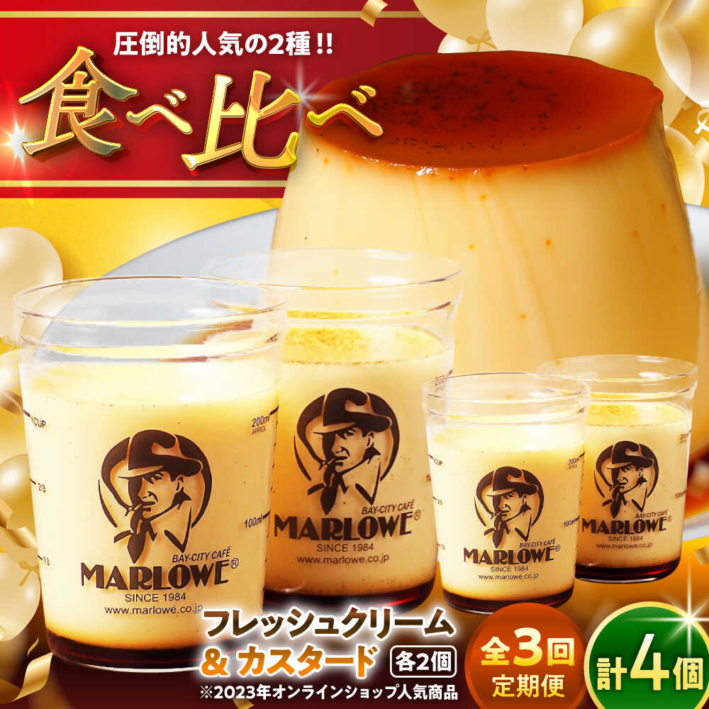 【ふるさと納税】【全3回定期便】カスタードプリン ( 180g × 2個 ) 北海道フレッシュクリームプリン ( 180g × 2個 ) 食べ比べ プリン お菓子 デザート スイーツ 神奈川県 葉山町 プレゼント プリン マーロウ 国産 送料無料 定期便【(有)マーロウ】[ASAY019]