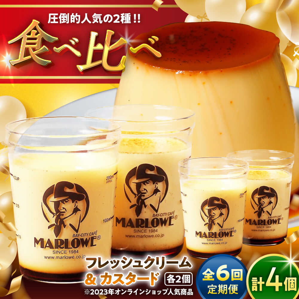【ふるさと納税】【全6回定期便】カスタードプリン ( 180g × 2個 ) 北海道フレッシュクリームプリン ( 180g × 2個 ) 食べ比べ プリン お菓子 デザート スイーツ 神奈川県 葉山町 プレゼント プリン マーロウ 国産 送料無料 定期便 【(有)マーロウ】[ASAY020]