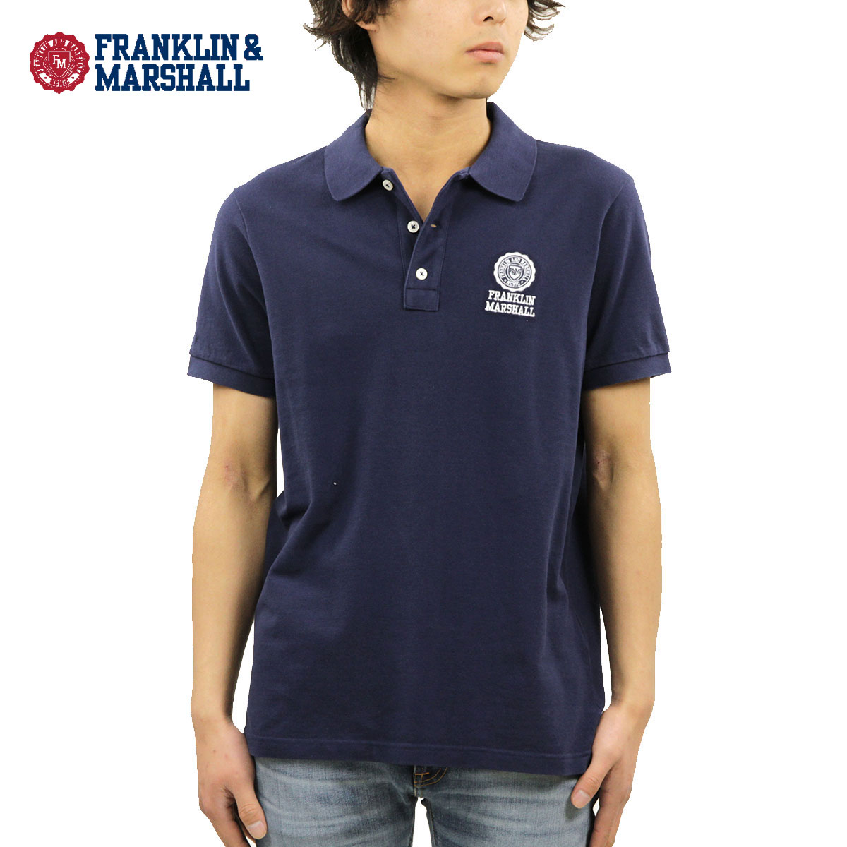 フランクリン マーシャル ポロシャツ メンズ 正規販売店 FRANKLIN&MARSHALL 半袖ポロシャツ LOGO POLO SHIRTS POMF402AN F167 NAVY
