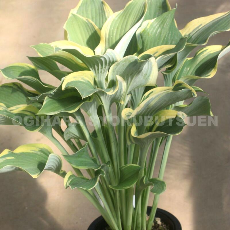 苗木部の配送料金についてこちらの商品の送料区分は・・・通常梱包(宅配便)です。 ※送料は購入手続きにて配送先住所を指定した際に表示されます。※離島・一部地域は追加送料がかかる場合があります。送料についてはこちらお届けする商品について商品について商品はポット苗です。根鉢の部分も含め高さ約45cmです。根鉢の大きさは6号(直径18cmポット)です。■上記の商品サイズは入荷時のサイズです。■開花時期以外は花や花芽はついておりません。■冬の間は地上部が枯れますが、春になったら芽吹いてきます。■春から秋は随時切り戻して草丈を調節しています。(夏季剪定の際は10cm程度に刈り込みます)切り戻すため花が咲いていない場合があります。※こちらの商品は鉢植え栽培が可能です。ホスタ リーガルスプレンダーの育て方植え方・用土植え付けは秋~春植えがおすすめです。春~初夏の植え付けでは根を崩さずに植えてください。土質や植え場所は選びませんが、夏の強い光で葉やけしやすいので半日陰~日陰か午前中の日当たりの場所が良いです。青みを帯びた品種は日当たりに植えたほうが葉が白い粉を吹いたように美しくなります。腐葉土や堆肥をたっぷりすき込んだ土に3cmくらい深めに植えると良いです。品種によって葉張りが異なるので、植え付け間隔は小型種で20cm、中型で40cm、大型で80cmくらい離します。最初は込み合っても良いくらいで植えて、1~2年で間引くように配置のバランスを整えるように冬に植えなおすのも良いです。水やり湿り気のある場所が好きです。雨が当たる場所であれば、水やりは特に必要はありませんが、適度に湿り気のある場所が良いです。肥料のやり方肥料は控えめで大丈夫です。緩効性化成肥料や有機液肥を春に控えめに与えます。花芽の付き方ギボウシの花は7月~8月、株もとから花茎が立ち上がってきて開花します。花が終わったら株元で花茎をカットしましょう。剪定方法花は必ずしも観賞価値があるとは限らないので、花茎が伸び始めたら切り落としても良いです。花が終わったあとの花茎に種がつき、それもまた風情があります。病害虫の予防法白絹病が出ることがあります。初夏に地際の葉がらが茶褐色になって次々と倒れます。病変部を切り取り、殺菌剤で土と病変部を消毒します。日頃の観察が大切で、害が広がらないように早めの防除や対策を心がけて下さい。環境や種類選びによってもかなり減らすことができます。また、同一品種を多く植えるのではなく、いろいろな品種にハーブなどを加えて混植することも対策の一つです。増やし方寿命は長いので株分けしなくても長く楽しめます。増やす場合は株分けで増やします。地植えなら2~3年、鉢植えなら1~2年くらいが株分けの目安です。大きくなり過ぎてきた、混み合って花付きが悪くなったかも、と思ったら株分けをします。時期は秋と春の彼岸頃で、株をハサミで丁寧に切り分けます。太い根はなるべく切らずに腐った根を取り除き、それぞれの芽になるべく多くの根を残すようにします。実生(種)でも増えますが、斑が消えたりして原種に戻ることが多いです。ホスタ(ギボウシ) “リーガルスプレンダー”別名「ホスタ」、漢字では「擬宝珠」と書きます。暑さは少し苦手ですが、丈夫で寒さには強く、日本全国で庭植えができます。日陰にも強いので、彩りを出したい時にオススメしますある程度日のあたる『半日陰』がベストです。暑さは少し苦手ですが、丈夫で寒さには強く、日本全国で庭植えができます。立ち葉で背が高くなります。ホスタ(ギボウシ) リーガルスプレンダーの葉春から秋まで美しい立ち葉で背が高くなる斑入り葉のカラーリーフです。リーガルスプレンダーは大型で覆輪が入る品種です。高さ約60cm、横張り約100~150cmくらいです。ややスッと立つ、灰みを帯びた柔らかな緑葉に、クリーム色(~白)の狭めの覆輪が入ります。寒河江(サガエ)に似ていますが、やや葉が細身ですっきりしています。葉の裏はより白く銀白色で、すっきりした立ち姿と相成って涼しげな印象になります。春から秋まで綺麗な斑が入ります。初夏ごろに、淡いラベンダー色の花を咲かせます。2003年アメリカホスタ協会ホスタ オブ ザ イヤー暑さは少し苦手ですが、丈夫で寒さには強く、日本全国で庭植えができます。日陰でもよく育つグランドカバー向けのカラーリーフ です。年々大株に育ち素晴らしい景観を作ります。宿根草のナチュラルガーデンには欠かせない植物です。ユリ科の宿根草で日本原産の「ギボウシ」を品種改良したものです。冬は地上部は枯れてしまい、根だけで越冬します。春に美しい葉が生えそろい、花茎が伸びて初夏に淡い紫色の花が咲きます。葉は水をコロコロとはじくのも美しいです。強い日差しの下では斑入り種は葉の白い斑の部分が葉焼けすることがあります。和名はギボウシで、漢字では「擬宝珠(ぎぼうし)」と書きます。ホスタ “リーガルスプレンダー”の特徴学