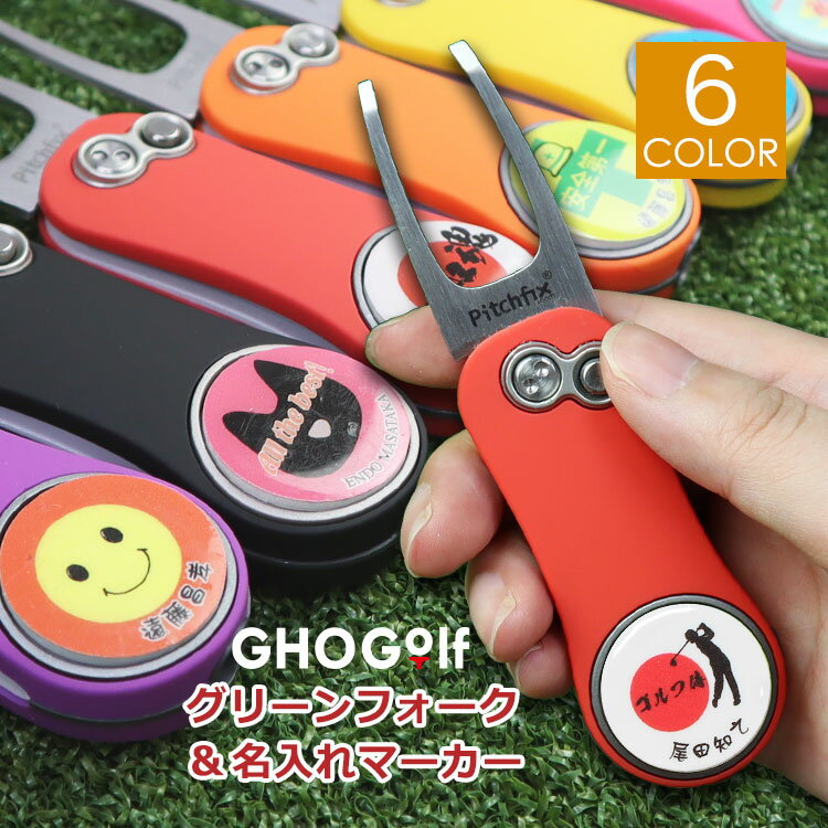 グリーンフォーク 折りたたみ 多機能 & 名入れ ゴルフマーカー(25mm)/ ピッチ フォーク 2本刃 スライド式 収納 鉛筆 ティー削り付き ボールマーカー ディボット ツール 贈り物 ギフト プレゼント ラウンド 小物 コンペ 父の日 記念 GHOGolf