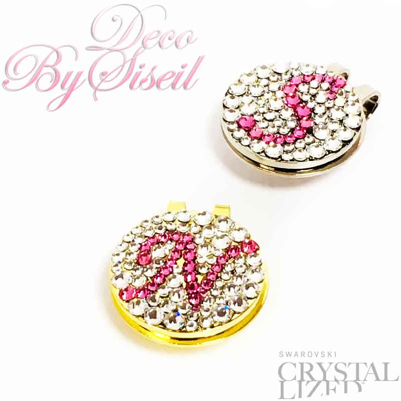 【送料無料】デコ ゴルフマーカー【2個セット】【名入れ】オーダーメイド スワロフスキー マグネットタイプ シルバー/ゴールド×ピンク/ブラック/ブルー