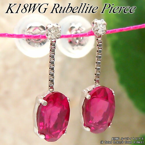 [ジュエリークイーン]【あす楽】ホワイトゴールド (K18WG) ルベライト ピアス(R Total 0.9ct/ダイヤモンド/トルマリン/希少石/レアストーン)【宝石 ジュエリー】【プレゼント】*
