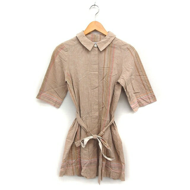 【中古】ルゼフィール Le zephyr シャツ チュニック 5分袖 配色ストライプ 綿麻 1 ベージュ /FT42 レディース 【ベクトル 古着】 250423